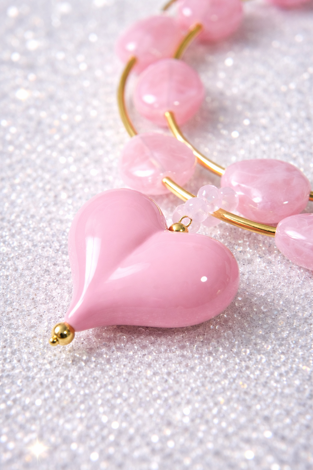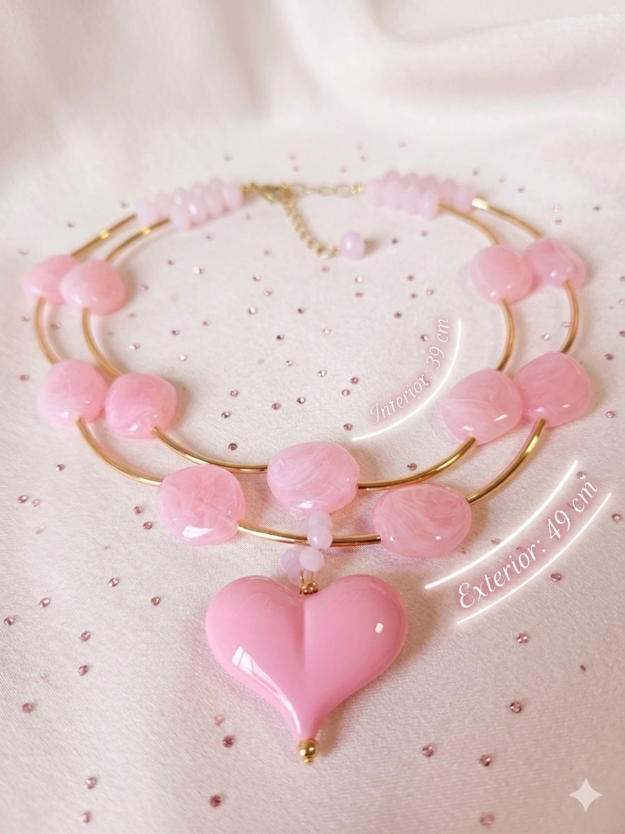 El broche final a esta obra de artesanía lo pone un romántico e imponente corazón central en 3D con un acabado ultrabrillante que enamora a primera vista. Una joya de autor con un empaque visual increíble, perfecta para transformar cualquier look básico aportando frescura, luz y muchísima personalidad, sin renunciar a la comodidad en tu día a día.