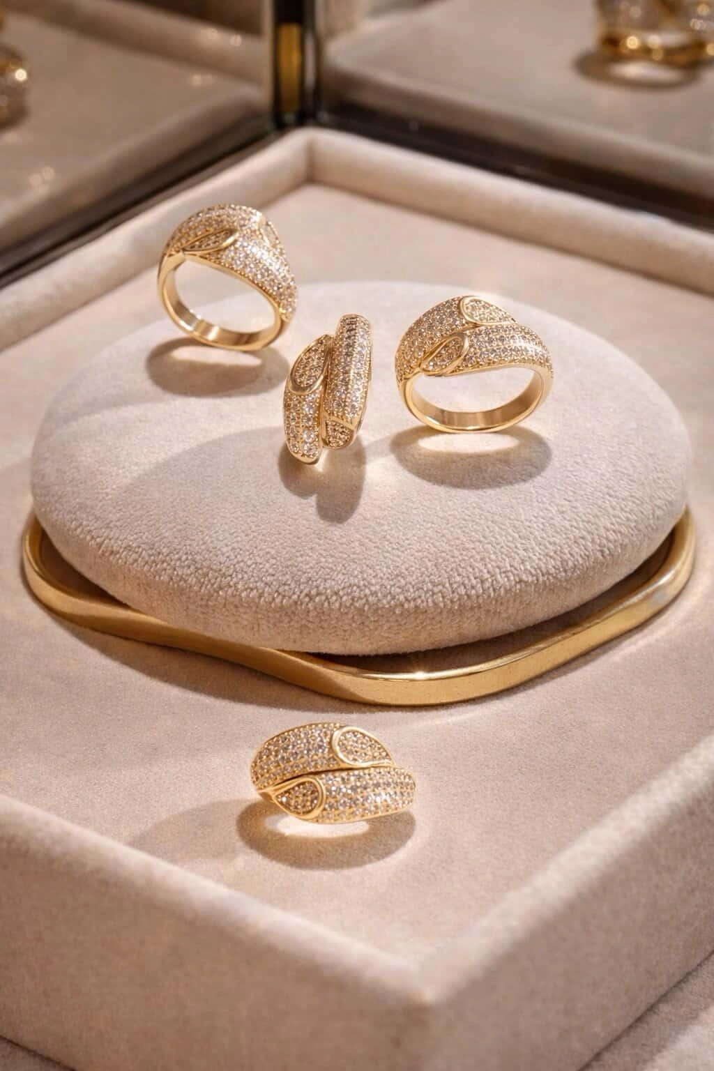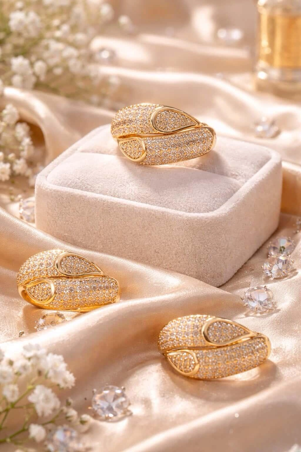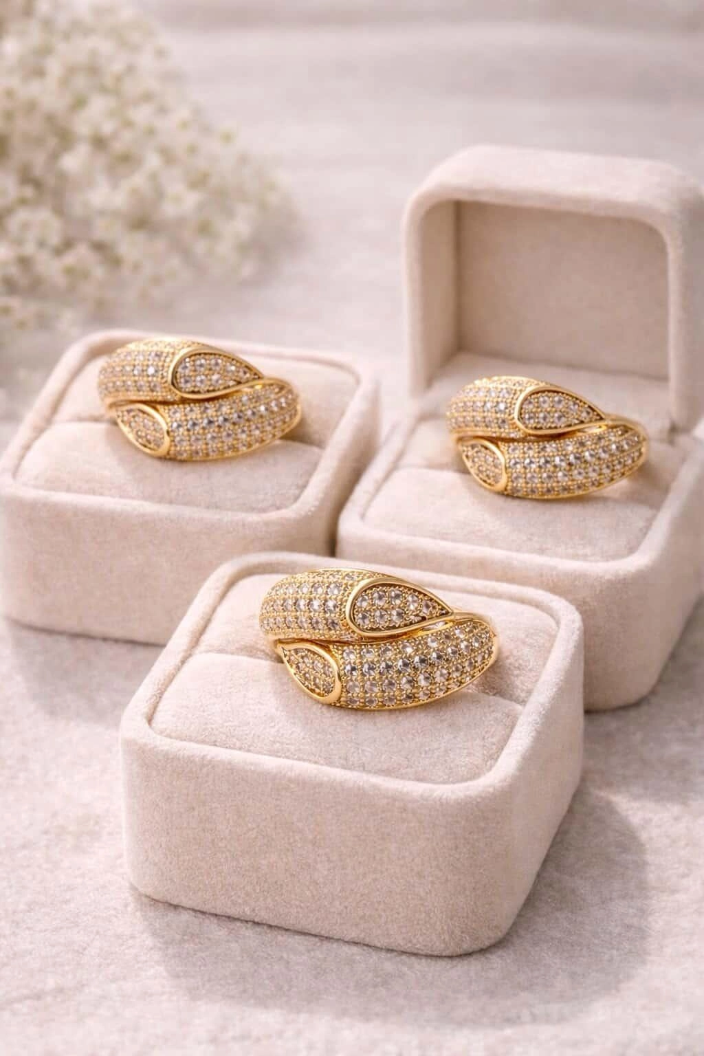 Viste tus manos con pura luz y sofisticación. Este anillo no es una simple joya, es una verdadera declaración de intenciones diseñada para acaparar todas las miradas. Fabricado en latón dorado de alta calidad, destaca por su elegante diseño cruzado y envolvente que se adapta de maravilla al dedo, creando un efecto visual único.