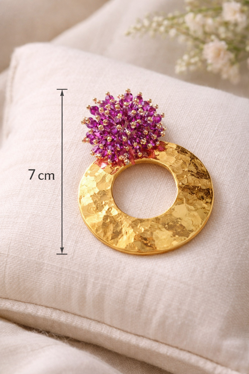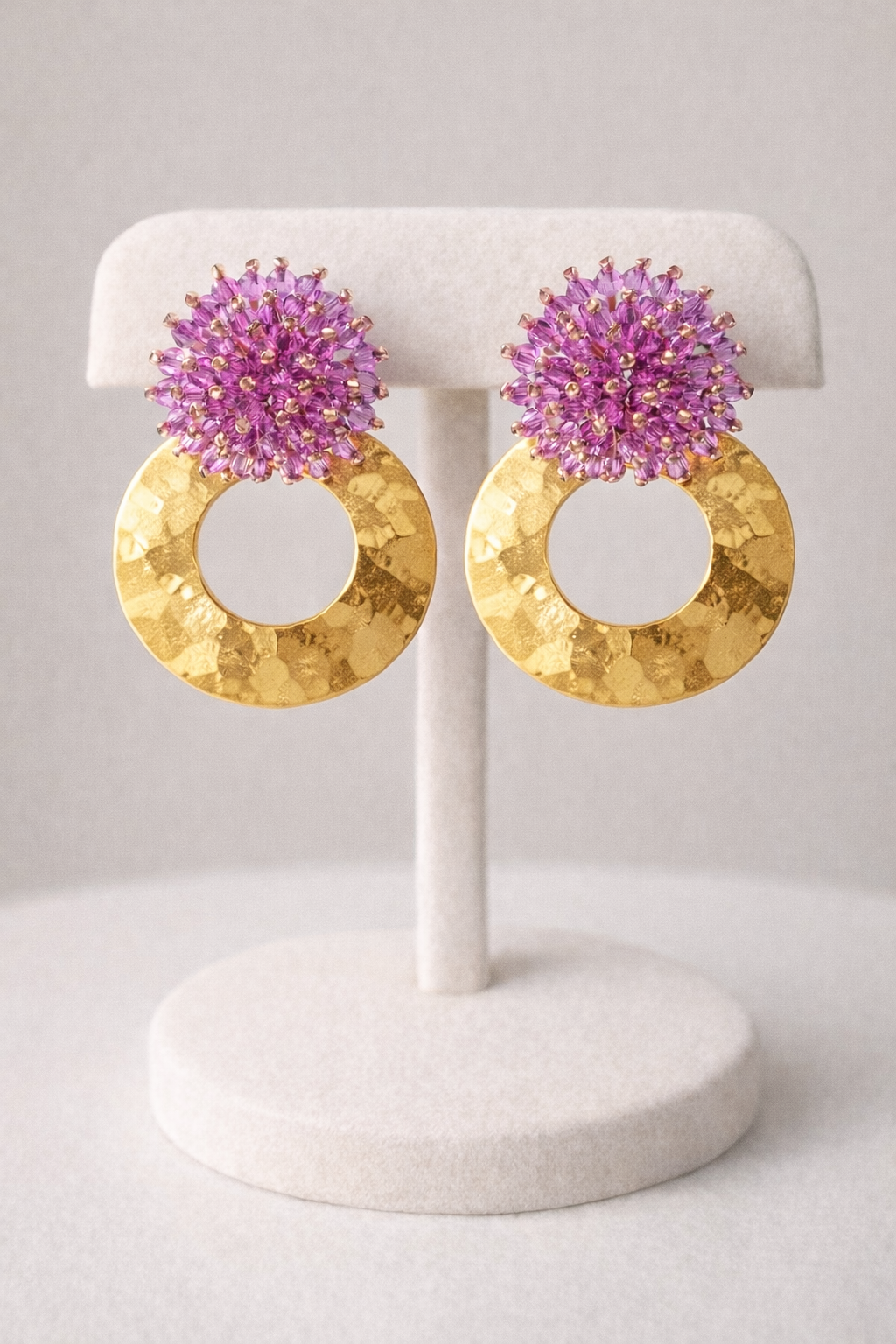Parte inferior: Aro acabado martillado en zamak hipoalergénico con baño de oro.