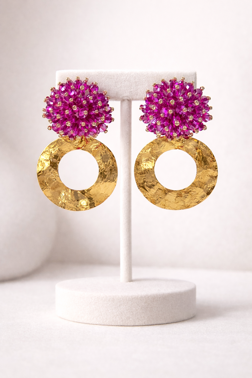 Pendientes Aro Martillado y Cristales Cosidos