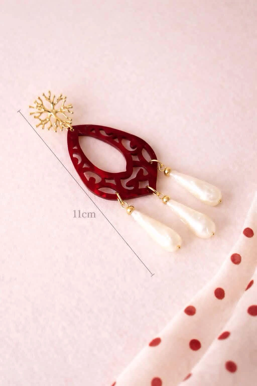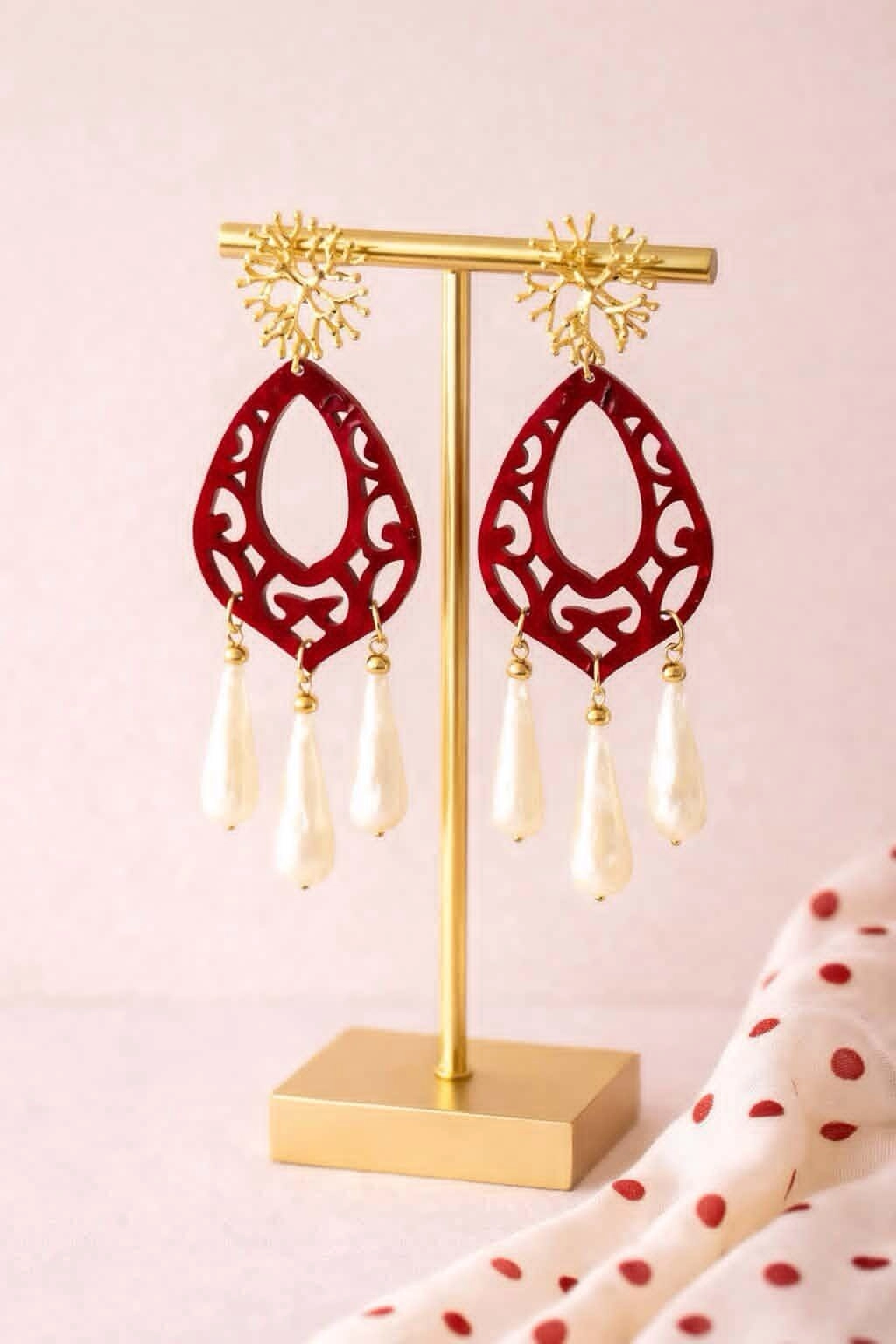 El gran atractivo de su diseño comienza con un espectacular motivo superior en forma de «fuegos artificiales», minuciosamente elaborado en acero antialérgico y blindado con un luminoso baño de oro. De esta pieza nace un fascinante cuerpo central de resina roja calada, que aporta una contundencia visual increíble. Sin embargo, su mayor secreto reside en su comodidad: a pesar de su tamaño maxi y su volumen, son sorprendentemente ligeros y no pesan absolutamente nada, permitiéndote bailar y disfrutar durante horas con total confort.